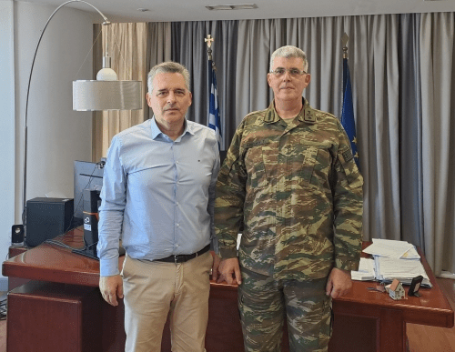 Εθιμοτυπική επίσκεψη στον Γενικό Γραμματέα της Αποκεντρωμένης Διοίκησης Πελοποννήσου, Δυτ. Ελλάδας & Ιονίου, Δρ Δημήτρη Κατσαρό πραγματοποίησε, σήμερα το πρωί, ο Διοικητής του Κέντρου Εκπαίδευσης Τεχνικού Πατρών, Ταξίαρχος Γεώργιος Αλεξίου.